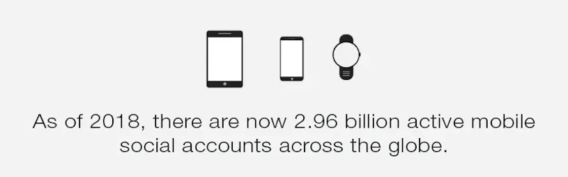 1. As of 2017, there are now 2.96 billion active mobile social accounts across the globe. And that number is growing every day. (source: We Are Social)